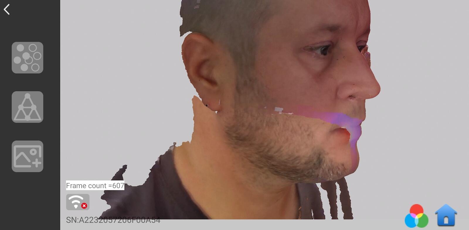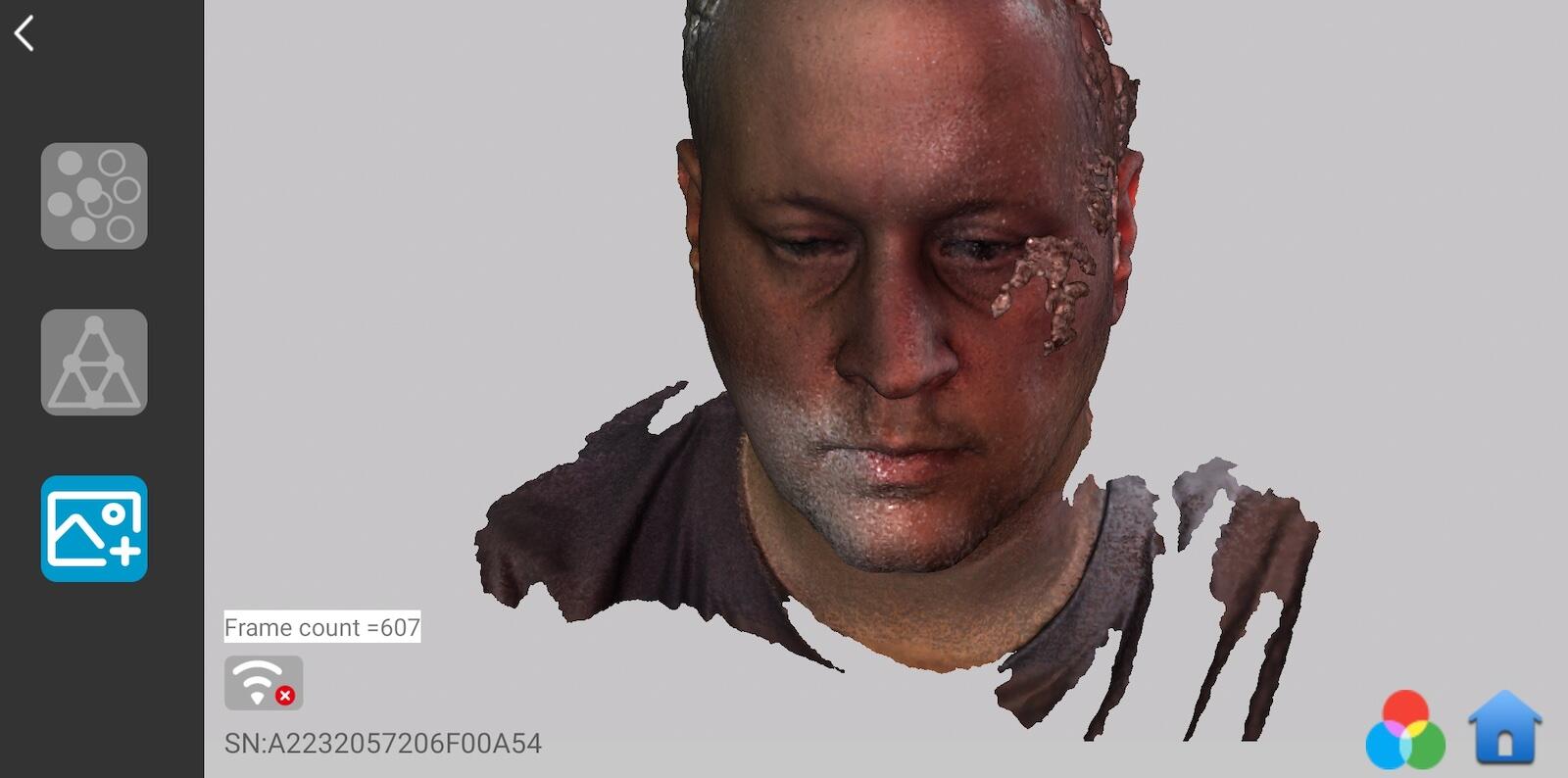 Selbstverständlich klappt hier nicht alles sofort und immer anstandslos und problemfrei. Auch den Arsch mit Ohren habe ich 2-3mal versucht zu scannen. Beim ersten mal hatte die Kamera bzw. die App leider nicht erkannt, dass ich die Figur beim pausieren gedreht habe. Das Ergebnis sind dann wilde zusammen Stückelungen diverser Teile, die die App bzw. Kamera erkannt haben. Fällt einem solch ein Fehler direkt während des Scans auf, so kann mit der Zurück-Taste noch einmal ein Teilscan ab der letzten Pause-Taste rückgängig gemacht werden.