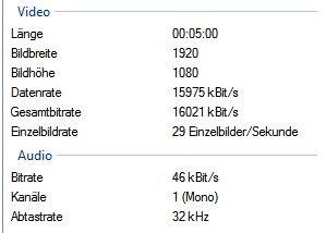 Die technischen Daten dieses erwähnten 5 Minuten-Videoclips sind übrigens die folgenden:
