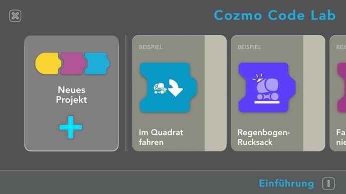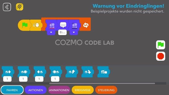 - Cozmo, mithilfe einer grafischen Bedienoberfläche, Abfolgen von Bewegungen und Aktionen einprogrammieren