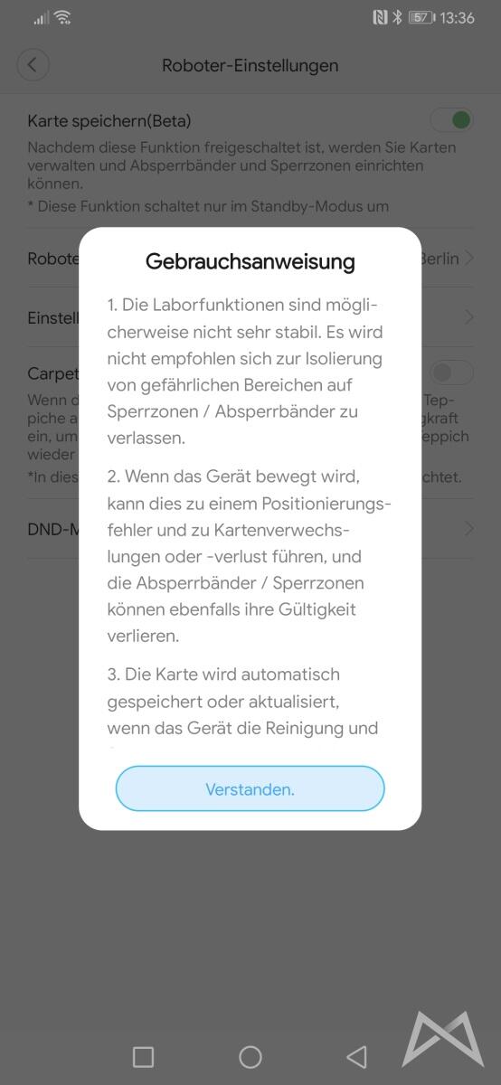 Um das Gewissen zu beruhigen ist auch noch das Feature „Wischmop“ integriert worden, was aber in meinen Augen eher eine Spielerei ist. Die App ist übersichtlich und strotzt schon fast vor Features. Lediglich das Benennen einzelner Räume fehlt mir hier noch, aber das kann ja mit einem Update noch kommen.