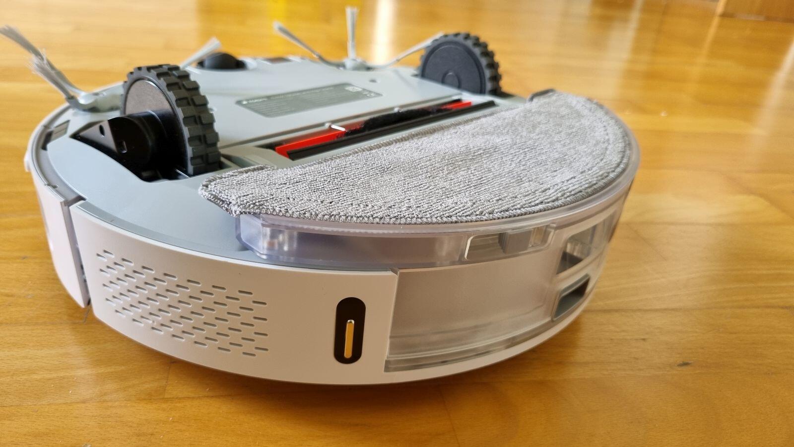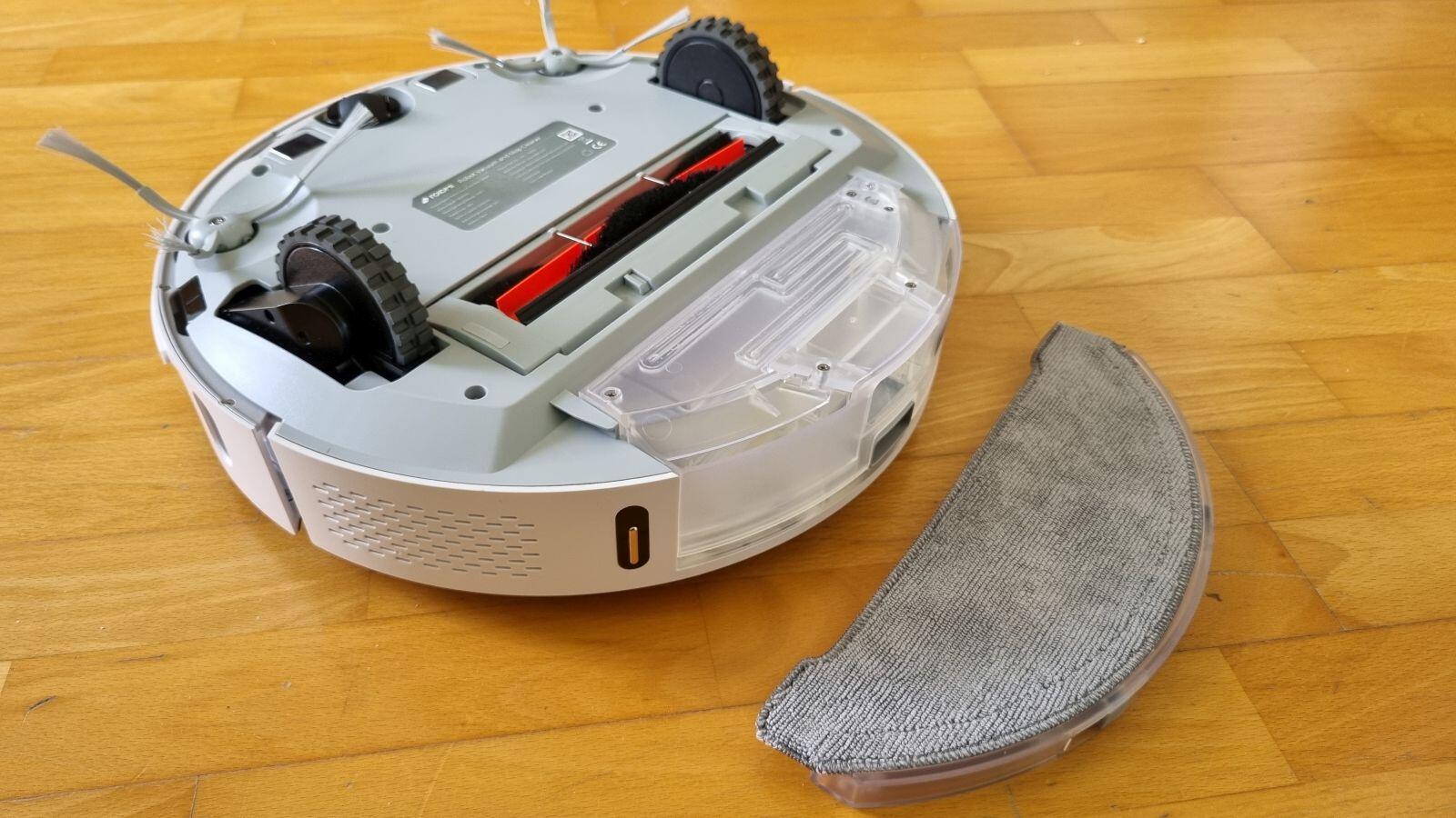 Der Roidmi Eve Plus Saugroboter kann auf Wunsch auch wischen. Dazu wird unterhalb des Absaugbehälters im Robosauger noch ein extra kleiner Behälter inkl. Microfasertuch oder optional mit einem Einwegtuch eingeclipst.