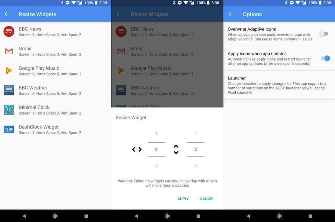- Widgetgrößen auf bis zu 1×1 reduzieren