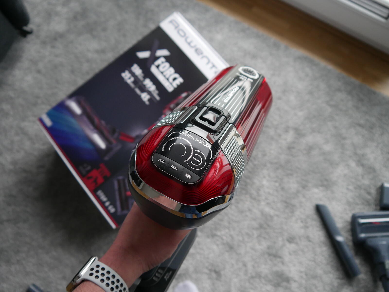 Im Alltag saugt es sich bisher ganz gut mit dem Rowenta X-Force Flex 11.60 und man merkt, dass Rowenta die Saugleistung erhöht hat. Wobei ich ehrlich sagen muss, dass der Eco-Modus zu schwach ist und ich standardmäßig den Max-Modus genutzt habe. Diesen kann man nach dem Start mit einer Taste aktivieren.
