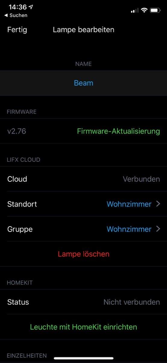 Softwareseitig habe ich den LIFX Beam mit allen möglichen Diensten verbunden, aber am Ende schalte ich das Licht fast immer nur über eine Alexa-Gruppe, in der sich auch der TV und eine Stehlampe im Wohnzimmer befindet.
