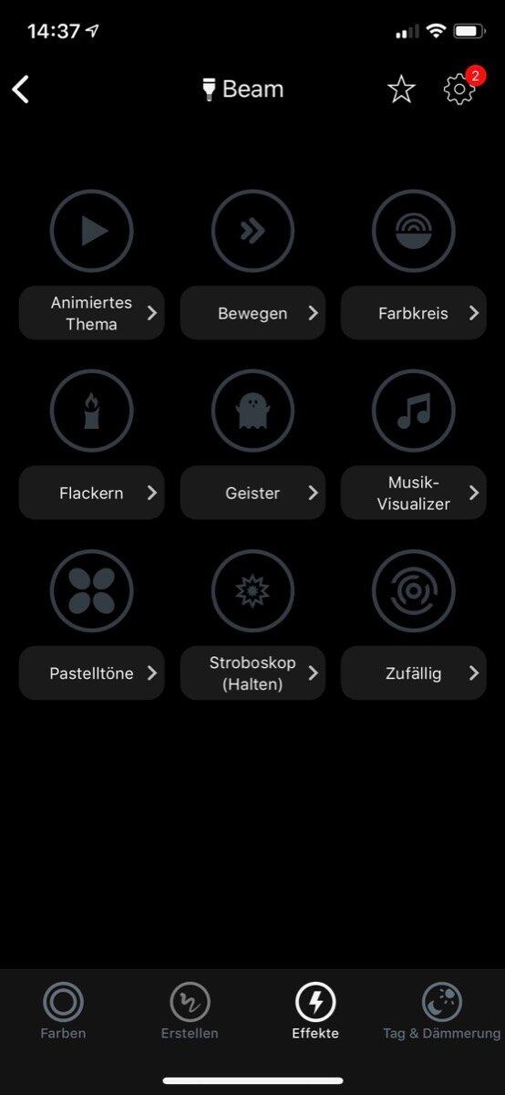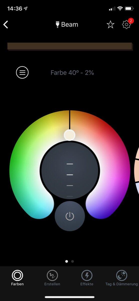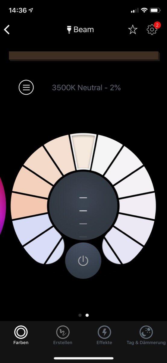 Natürlich könnte man auch alle möglichen Farben und Animationen mit dem LIFX Beam darstellen, in meinem Fall beschränkt sich das aber meist auf ein 3500 K Neutralweiß. Warmweiß ist aber natürlich auch möglich (siehe Bild).
