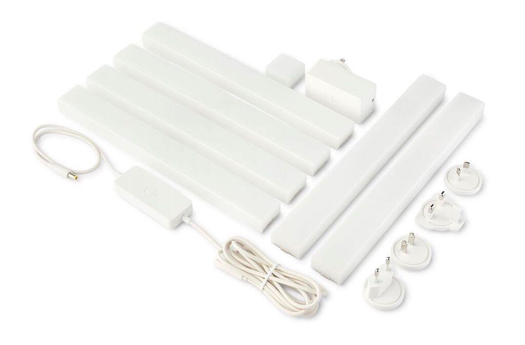 Es war naheliegend, dass ich schaue, welches LIFX-Produkt hinter meinen TV wandern könnte. Gelandet bin ich beim LIFX Beam. Das ist ein dickes Paket mit sechs Lichtleisten und einem Eckstück. An jeder Lichtleiste und dem Verbinder sind Kontakte, sodass man die Teile per Magnetverbindung nach seinen Vorstellungen platzieren kann.