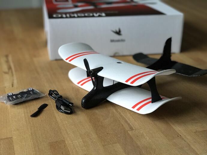Äußerst praktisch ist der Umstand, dass der Moskito einsatzbereit geliefert wird. Es muss nichts zusammengebaut werden. Ihr ladet euch die App auf’s Smartphone, Schalter am Flugzeug auf on, Pairing per Bluetooth – und schon ist man „ready to fly!“