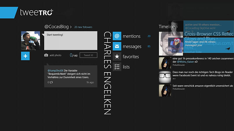Windows RT wäre also ein tolles Betriebssystem, wenn da nicht ein Aspekt wäre: Die Performance. Auch das Surface RT hatte bereits mit Rucklern zu kämpfen und das Samsung ATIV Tab macht da keine Ausnahme und das ist durchgängig im System der Fall. Überraschend oft hat man irgendwo mit kleinen Hängern zu kämpfen. Das fängt bereits beim Anpassen der Home-Tiles an, wo sich das Auswählen einer Kachel nicht wirklich flüssig anfühlt und es zieht sich bis in die einzelnen Apps hinein. Tweetro+ z.B. fühlt sich sehr unausgereift an, weil die Timeline alle paar Sekunden einfach stehen bleibt und Scrollen so kurz nicht möglich ist. Noch sehr viel deutlicher sieht man es bei MetroTweet. Die App ist von Haus aus nicht die performanteste, erreicht auf dem ATIV Tab aber einen neuen Höchstwert, wenn es um Ruckler und Hänger geht, sodass die Benutzung fast schon unzumutbar ist. Allerdings zieht sich das auch in diverse System-Apps hinein: Die Kontaktverwaltung nervt beispielsweise mit vielen, kleineren Denkpausen.