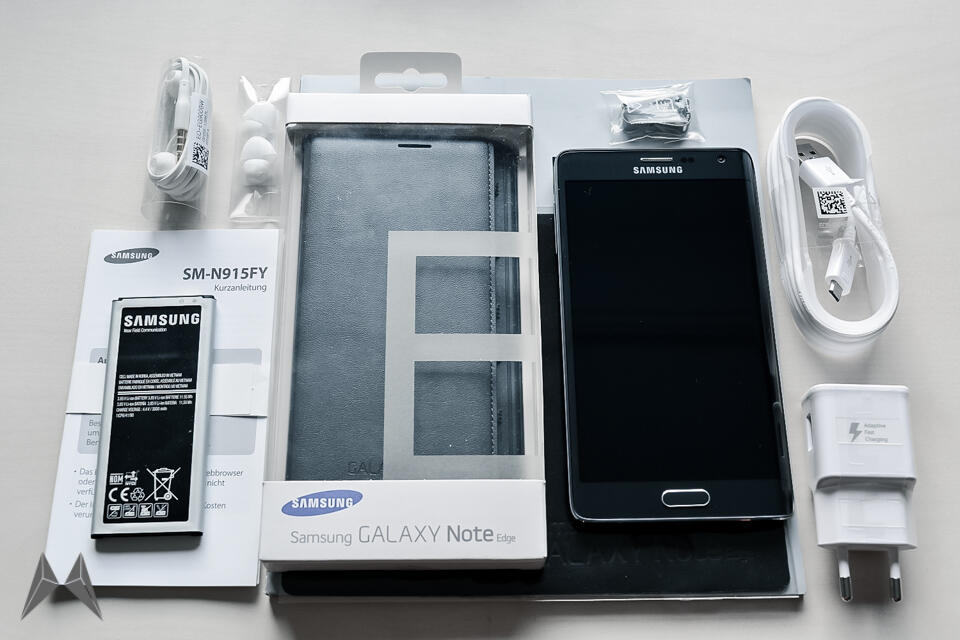 Da als Testexemplar ein Note Edge in der „Premium Edition“ zugesandt wurde, unterscheidet sich der Lieferumfang dank einiger Beigaben deutlich von einem einzeln erworbenen Smartphone. Die Premium-Edition war bis zum Jahresanfang exklusiv über den Samsung Store erhältlich, ist dort mittlerweile aber nicht mehr gelistet.