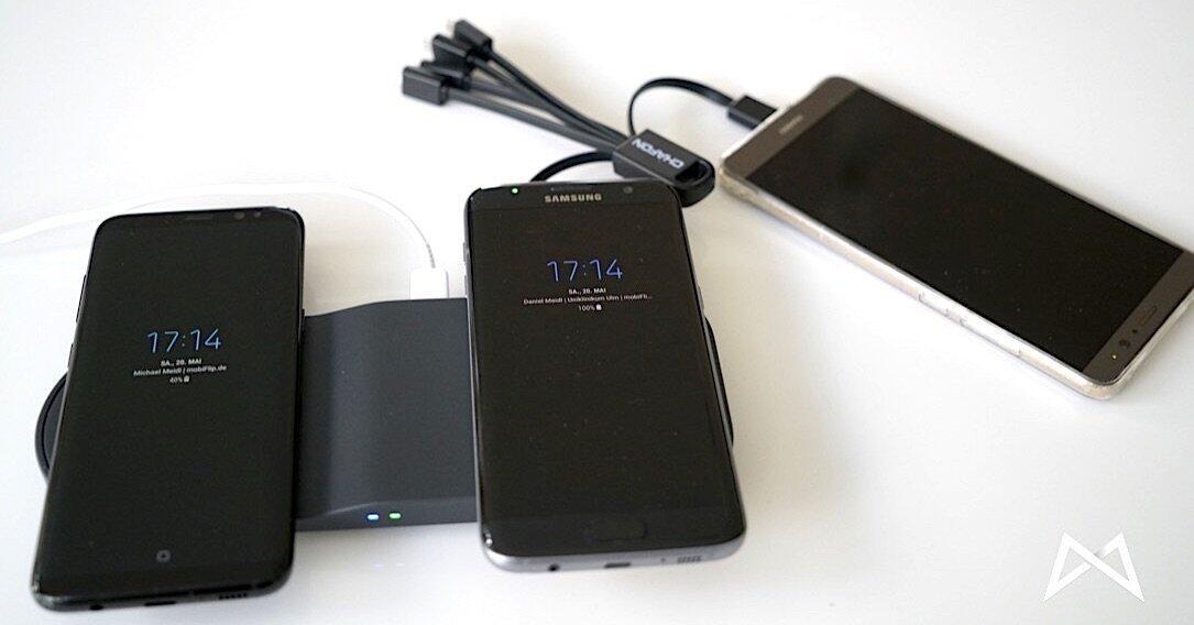 Das S8 kann via QI schnurlos aufgeladen werden. Ich persönlich habe zwei Dockingstations (Büro & Nachttisch) die zwar mind. 2 Spulen haben und auch mit Schnellladen werben, aber nicht per Quickcharge aufladen. Nicht falsch verstehen – das benötige ich auch nicht. Das Handy hält bei mir locker über den Tag durch, von daher lege ich es Nachts einfach auf die oben abgebildete Dockingstation auf und habe Morgens 100 %. Dabei ist es mir völlig egal, ob das Handy Nachts um 1 Uhr oder 3 Uhr komplett geladen ist. :)