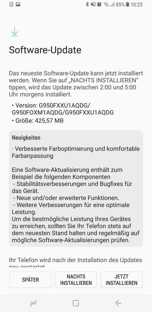 Auf einem der Samsung Galaxy S8-Geräte, welches wir bei mobiFlip nutzen, ist das angesprochene Update für die „Farboptimierung“ aktuell eingetroffen:
