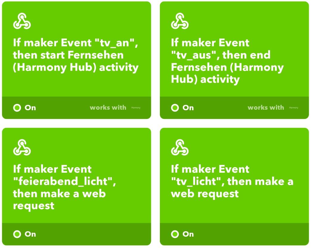 - Bei Event gebt ihr den Namen der Links/Buttons auf der Uhr ein. Beispiel: TV ein