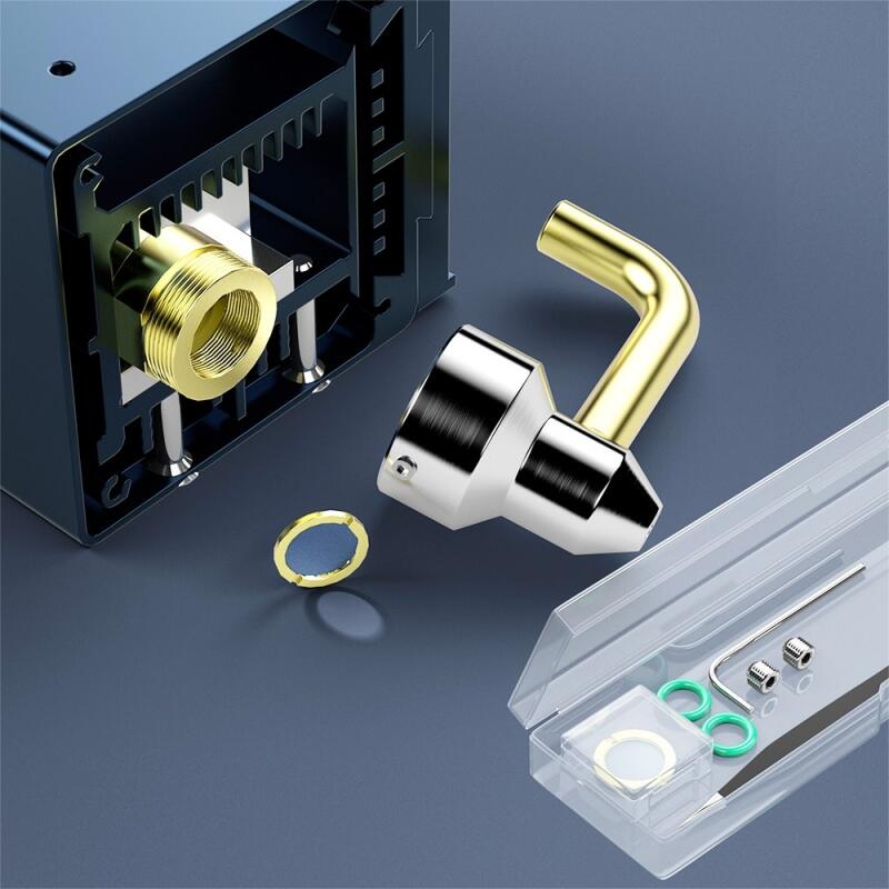 Ebenso für mich neu ist das beiliegende Ersatzglas. Zwischen Laser und dem Aufsatz für den AirAssist gibt es beim S30 Pro Max noch ein Schutzglas. Damit wird der Laser bzw. dessen Linse nicht direkt angegriffen, falls mal ein Funke zurück schlägt oder dergleichen. Im Falle eines Falles kann einfach ein neues Schutzglas reingeschraubt werden und die Arbeit weitergehen. Sehr schön!