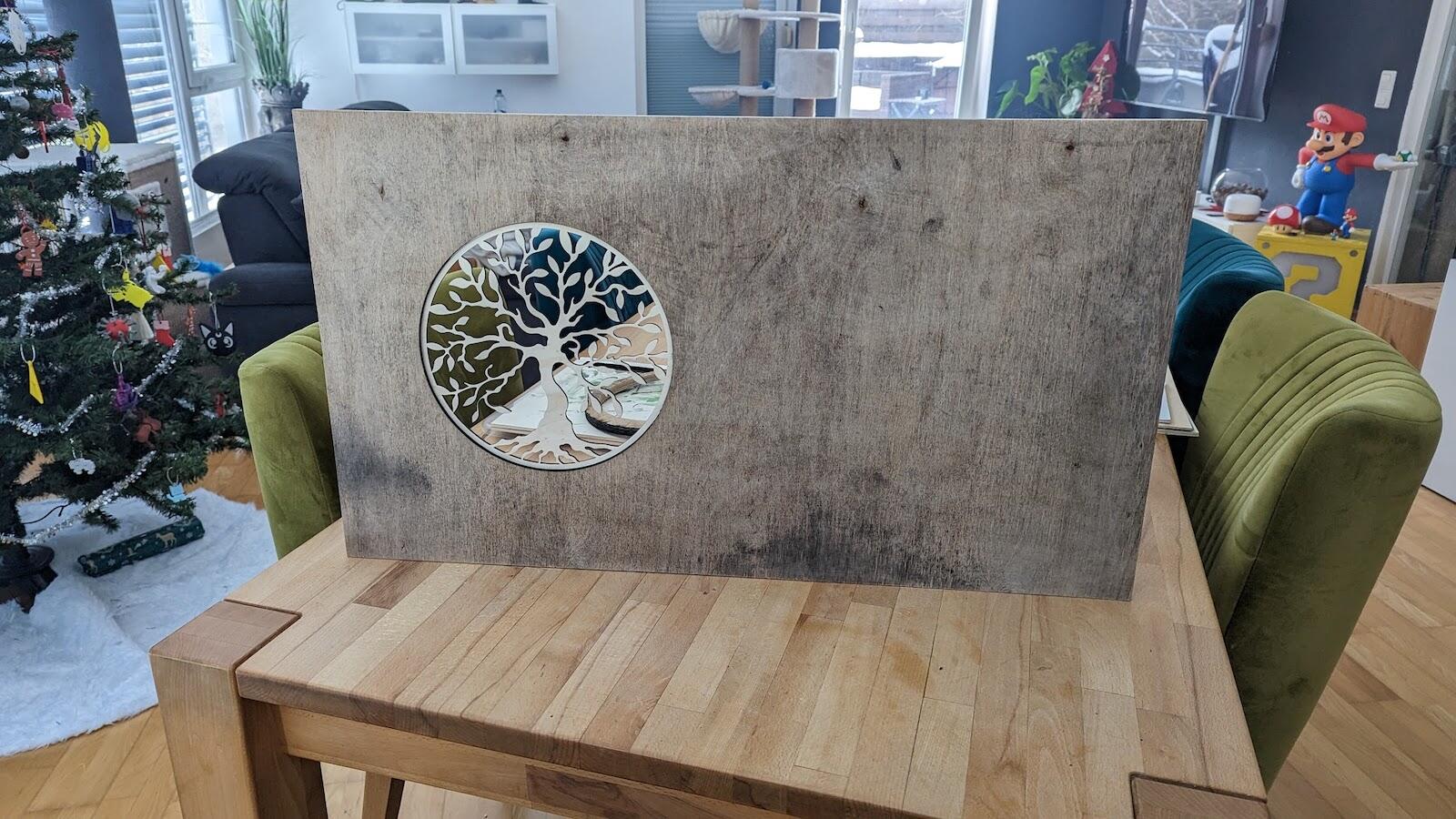 Mangels einer Vorlage an Einstellungen ging das nicht anders und hat so auch geklappt. Ich kann euch dadurch nur leider nicht genau sagen wieviel Runden gedreht wurden. Anschließend habe ich noch einen Baum des Lebens aus einer 4mm Pappelplatte für den helleren Kontrast geschnitten. Das ging im Vergleich dazu in wenigen Augenblicken. Also grob 3 Minuten Baum zu 20 Minuten Kreis oder so. Später soll das Objekt noch von hinten beleuchtet und an die Wand gehängt werden. Das bisherige Ergebnis gefällt mir schon mal sehr gut!