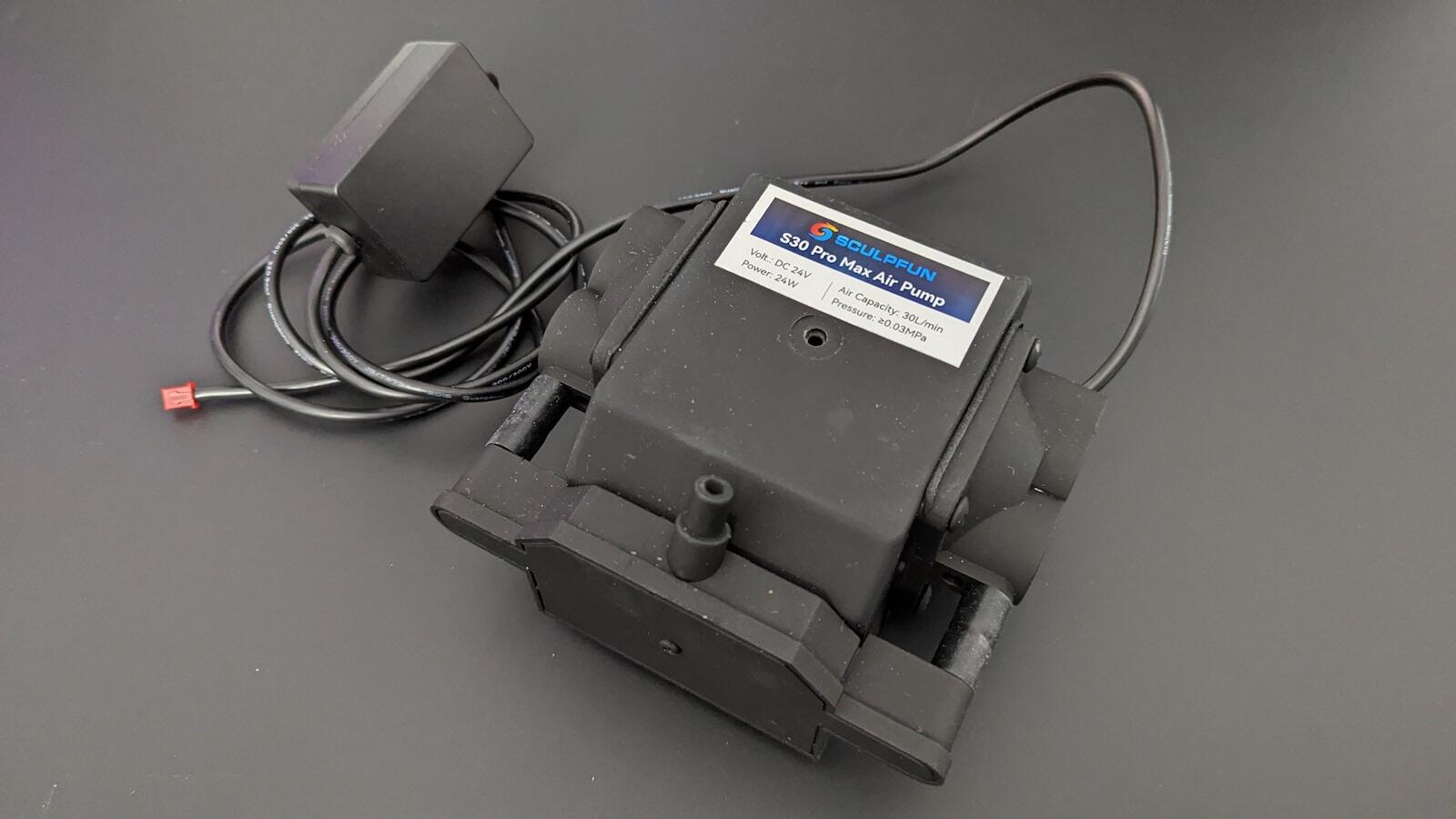 Die Besonderheit ist zum einen die, dass man solch einen Kompressor sonst normalerweise extra zu so einem Laser dazu erwerben muss (gern 50-100 EUR extra) und auch die, dass der Kompressor via Software aktiviert/deaktiviert werden kann. So kann man beispielsweise in Lightburn einstellen, dass der Schnitt um das Objekt drum herum mit AirAssist und die Gravur selbst ohne AirAssist gelasert werden soll. Dazu wird der Laser direkt am Mainboard des S30 Pro eingesteckt (roter Stecker oben) und hat auch gar kein extra Netzteil mehr. Sehr schick gelöst!