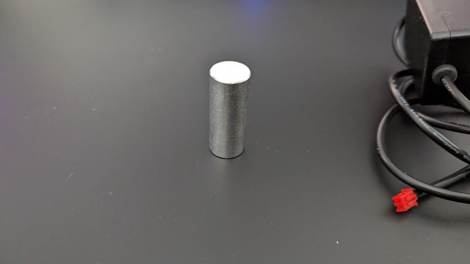 Wie immer gilt zuerst die Schutzbrille aufzuziehen! Der S30 hat zwar unten eine Abdeckung, welche den Laserstrahl nicht durchlässt, aber Sicherheit geht vor. Dann wird das Material eingelegt und der Laser fokussiert. Dazu klemmt man zwischen den Laserkorpus und das Material den beiliegenden Aluzylinder und schraubt den Laser auf dieser Höhe fest.