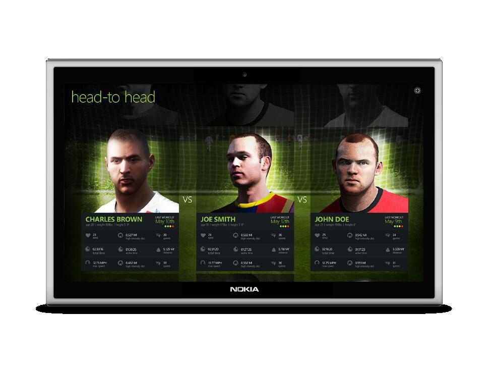 Helped design and concept the Adidas micoach app proposal for the Nokia Tablet. The Tablet App intended to be an extension of coaches allowing them to build teams and monitor individual trainings for each athlete. The way that works is to connect he app to existing technology on Adidas products to read the workout data registered by cell chip implants. The app also tapped into the community allowing users to challenge each other by sending notifications to friends and their social feeds.