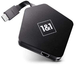 Für die Nutzung des TV-Angebots stehen die 1&1 TV-Box für 6,99 Euro monatlich oder der kompakte 1&1 TV-Stick für 2,99 Euro monatlich zur Wahl.