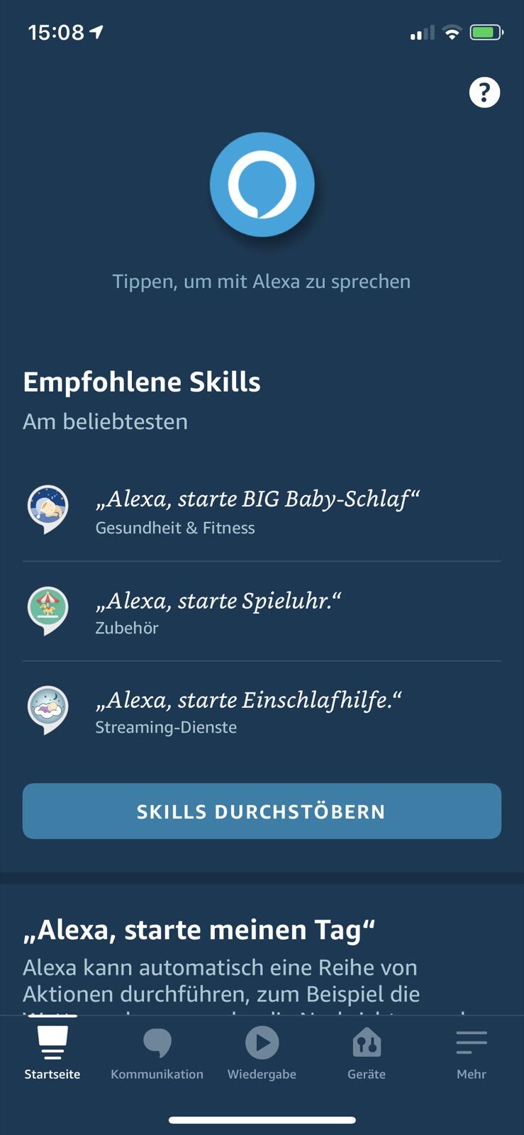 Kunden, die die Alexa-App regelmäßig verwenden, erhalten zudem personalisierte Vorschläge entsprechend der Features, die für sie am wichtigsten sind. Der neue Startbildschirm sollte bereits in der App sichtbar sein. Bei mir ist das zumindest der Fall.