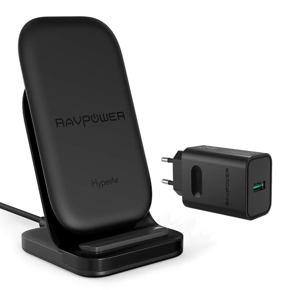 Ebenfalls eine Anmerkung wert, ist das heutige Blitzangebot des RAVPower Wireless Charger Hyperair. Dieses Qi-Ladegerät lädt mit maximal 10 Watt und nimmt die zu ladenden Geräte aufrecht auf. Ein QC 3.0 Adapter ist zudem auch im Lieferumfang.