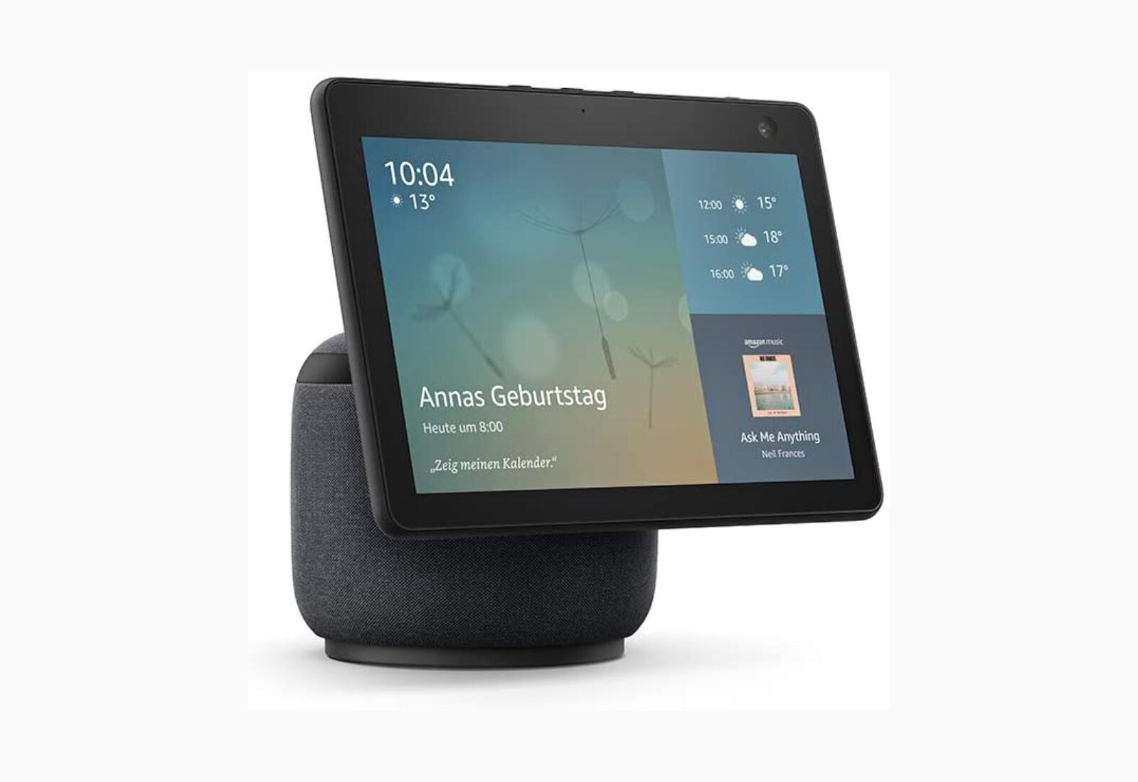 Der Amazon Echo Show 10 ist der bis dato größte Lautsprecher mit Display von Amazon und er besitzt auch eine Besonderheit, denn das Display kann sich leicht drehen. Es handelt sich um ein 10 Zoll großes HD-Display und dazu gibt es noch eine Kamera mit 13 Megapixel, die für Videotelefonie genutzt werden kann.