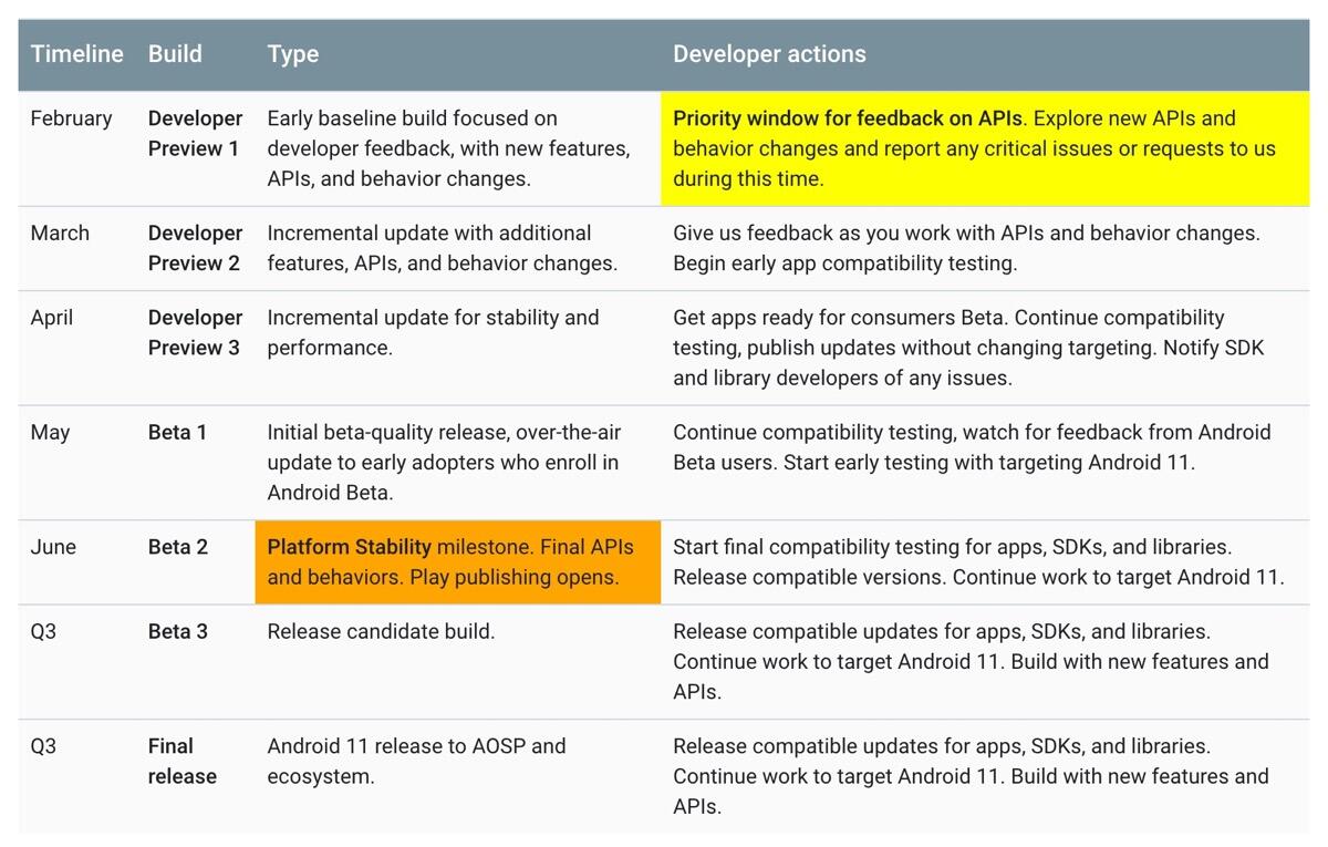 Mal schauen, ob Google den Zeitplan für Android 11 weiter wie geplant verfolgen kann, oder ob die aktuelle Lage irgendwann für eine Verzögerung sorgt. Falls nicht, dann sieht die Roadmap für das große Update auf Android 11 folgendermaßen aus: