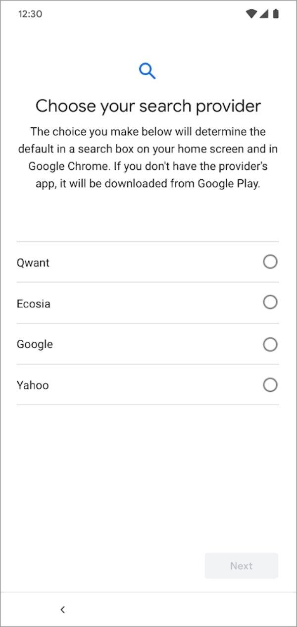Die Details zum „Android Choice Screen“ gibt es auf dieser Seite von Google und so wird das dann (nur eben mit den Gewinnern der Auktion) bald aussehen: