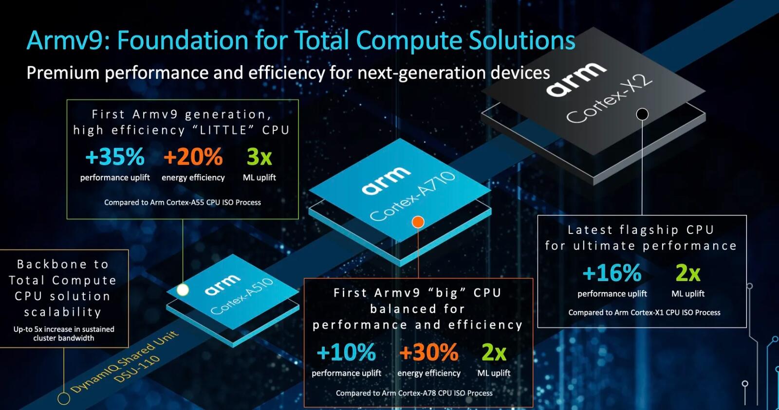Mit dem Schritt zu ARMv9 wird es mal wieder einen größeren Sprung geben und nun hat das Unternehmen eine kleine Preview für das kommende Jahr gezeigt. Ich lasse euch zunächst einfach mal die zwei wichtigsten Grafiken von ARM hier: