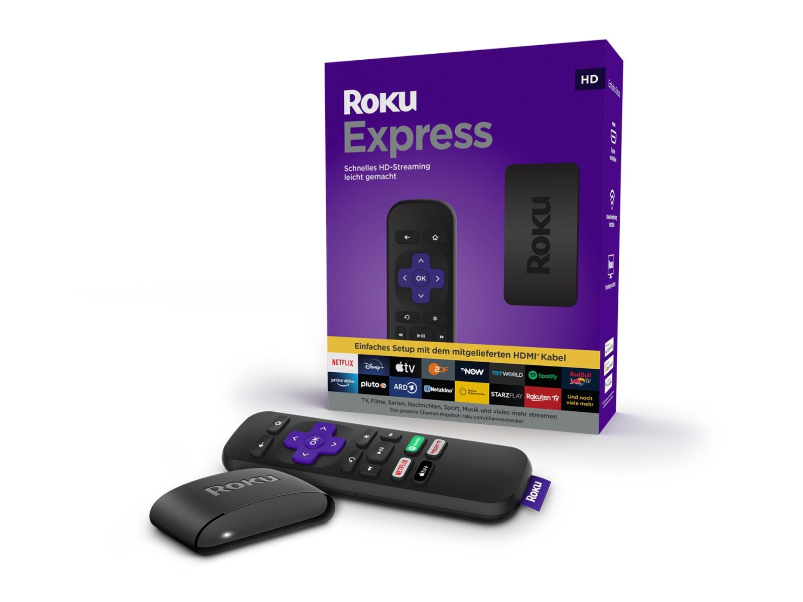 - Roku Express: Der Roku Express bietet einfaches HD-Streaming zu einem sehr günstigen Preis. Er ist leicht einzurichten und wird mit dem benötigten Zubehör geliefert, einschließlich einer einfach zu bedienenden Fernbedienung und einem High-Speed-HDMI-Kabel. Der Roku Express ist ideal für alle, die zum ersten Mal auf einem Fernseher streamen oder das Roku OS-Erlebnis auf andere Fernseher im Haus ausweiten möchten. Er eignet sich auch gut als Geschenk. Der Roku Express wird zu einem Preis von 29,99 Euro (UVP) erhältlich sein.