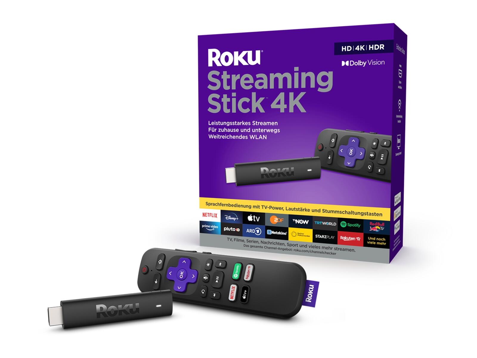Kompatibilität für kabelgebundenes Streaming sorgen für ein reibungsloses Entertainment-Erlebnis. Auch hier ist im Lieferumfang alles enthalten, um sofort mit dem Streaming zu beginnen. Dazu zählen eine Fernbedienung und ein Premium High-Speed HDMI-Kabel. Der Roku Express 4K wird zu einem Preis von 39,99 Euro (UVP) erhältlich sein. - Roku Streaming Stick 4K: Der Roku Streaming Stick 4K ist leistungsstärker als je zuvor. Die Startzeit ist im Vergleich zur vorherigen Generation um 30 Prozent schneller, damit Nutzer:innen direkt auf die gewünschten Inhalte zugreifen können. Er verfügt zudem über einen neuen WiFi-Empfänger mit großer Reichweite, der eine bis zu zweimal schnellere Geschwindigkeit liefert. Der Roku Streaming Stick 4K bietet atemberaubend scharfes 4K mit großem Detailreichtum und der vierfachen Auflösung von HD sowie lebensechte Farben und Klarheit mit Dolby Vision und HDR10+. Durch sein schlankes Design lässt er sich leicht hinter dem Fernseher platzieren. Darüber hinaus können Anwender:innen mit der mitgelieferten Fernbedienung ganz einfach per Sprachbefehl nach Top-Kanälen suchen und ihren Fernseher, das Streaming und den Ton steuern. Der Roku Streaming Stick 4K wird zu einem Preis von 59,99 Euro (UVP) erhältlich sein.