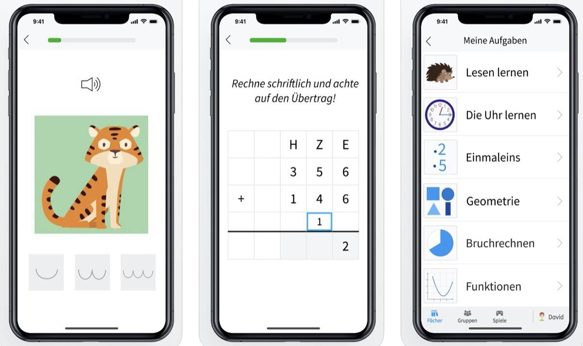 In der App gibt es über 100.000 Aufgaben, 200 interaktive Übungstypen, Erklärungen und Lernspiele. Die Themen aus der Schule sind dabei passend zu den Lehrplänen der Bundesländer zusammengestellt.