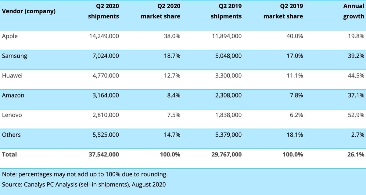 Der Tablet-Markt boomt nach langer Zeit mal wieder und laut Canalys gab es im letzten Quartal ein Wachstum von 26,1 Prozent. So ein Wachstum gab es schon lange nicht mehr, die Corona-Krise sorgt also für eine höhere Nachfrage.