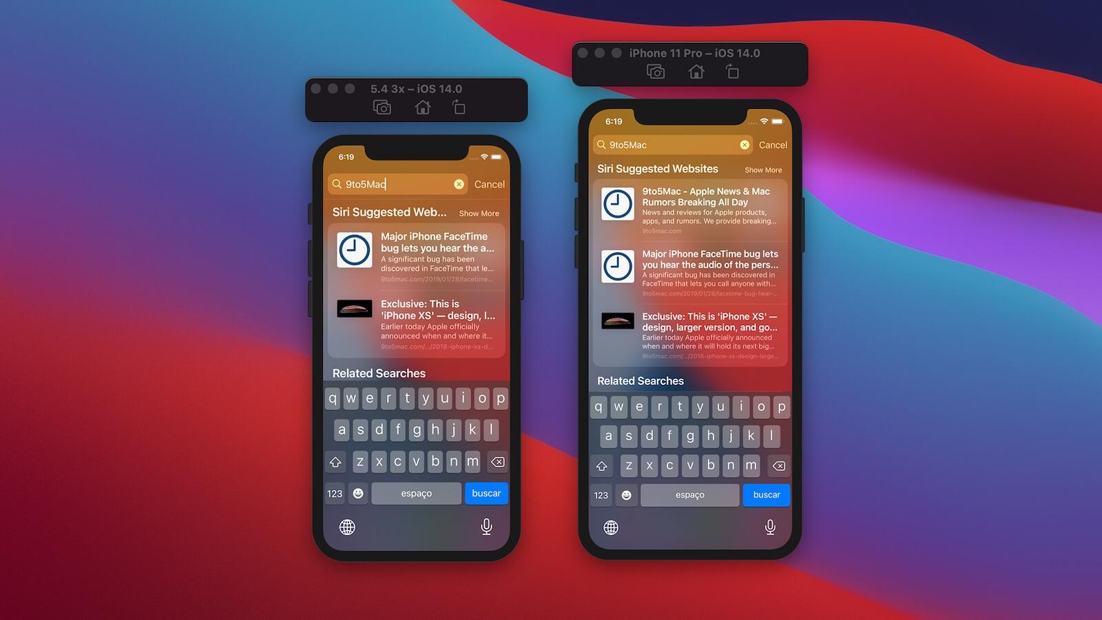 Da es nun einen Display Zoom für die iPhones mit 5,8 Zoll gibt, könnte Apple die neue Auflösung vom iPhone 12 mit 5,4 Zoll (960 x 2079 Pixel) nutzen. Man hat mal ein bisschen mit den Entwicklerwerkzeugen herumgespielt und ein paar Beispiele veröffentlicht. So könnte das iPhone 12 Pro im Vergleich mit dem iPhone 11 Pro aussehen (ignoriert die Notch, die dürfte 2020 etwas kleiner werden):