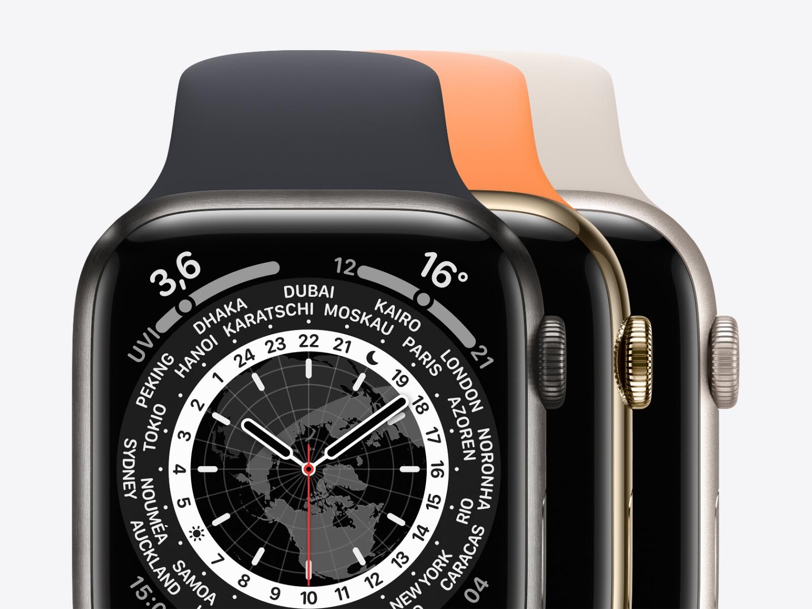 Die Apple Watch Series 7 ist im Kern eine Apple Watch Series 6, aber mit einem größeren Display. Apple wird sie wieder in drei Versionen (Aluminium, Edelstahl und Titan) anbieten und die Alu-Version gibt es in neuen Farben (siehe Beitragsbild).