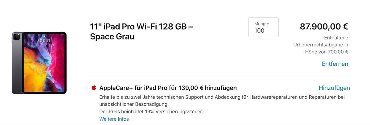 Diese Bestellmenge wurde nun entfernt. Ich habe das eben mal mit einigen Produkten im Store durchprobiert, bei den iPhones gibt es nun aber eine maximale Menge von 6 Einheiten. Wobei ich nicht weiß, ob es diese vorher schon gab. Vom neuen iPad Pro hätte ich aber theoretisch 100 Einheiten im Apple Online Store bestellen können.
