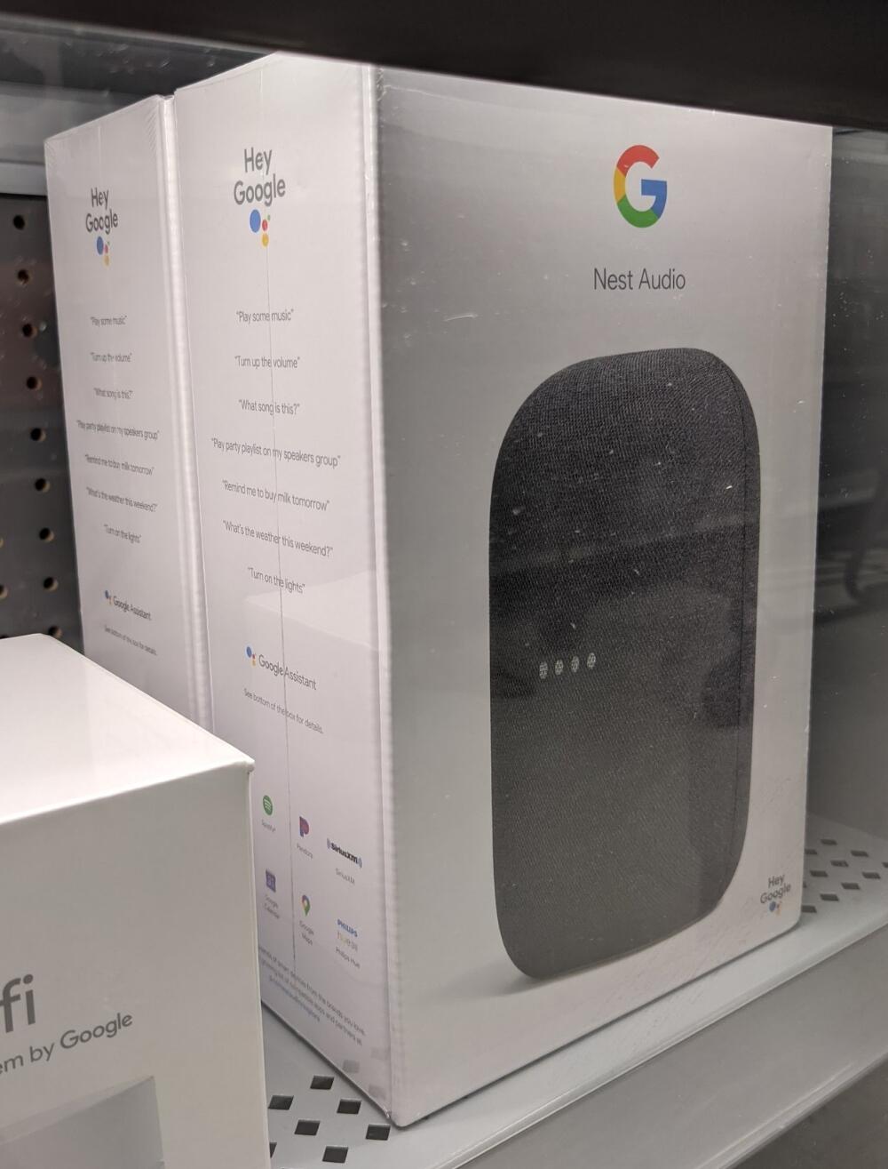 Es scheint so, als ob Google die neuen Produkte direkt nach dem Event verkaufen möchte, denn bei Walmart ist der neue Speaker nun sogar schon im Regal zu sehen. Google scheint sich für „Nest Audio“ als Namen entschieden zu haben.