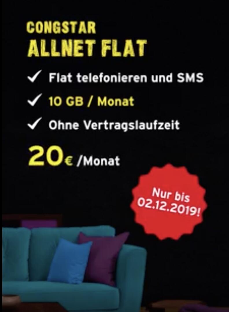 Congstar plant einen Aktionstarif zum Cyber Weekend. Dieses ist das Wochenende vor dem Cyber Monday. Dementsprechend endet die Aktion auch am Montag, 2. Dezember 2019, wann sie aber genau startet, ist noch unklar.