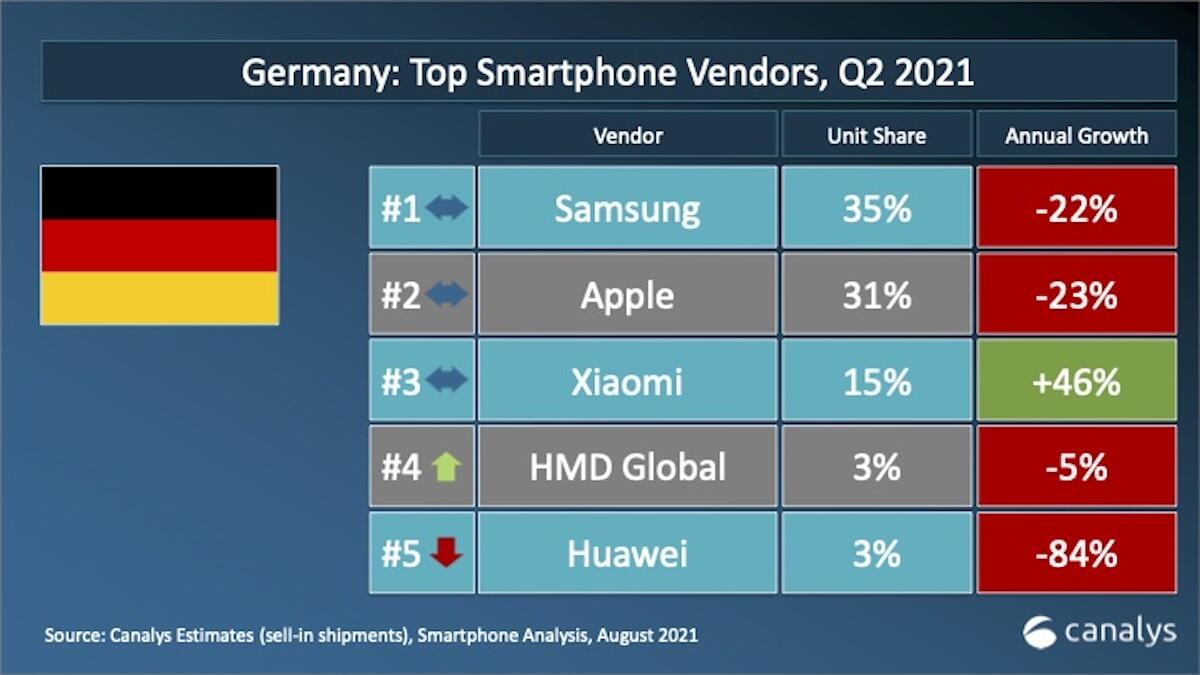 Mit Blick auf die Verkaufszahlen und den Marktanteil konnte sich Xiaomi auch im zweiten Quartal den dritten Platz in Deutschland sichern. Laut Canalys ist man zwar noch weit hinter Samsung und Apple, aber man ist eben die neue Nummer 3.