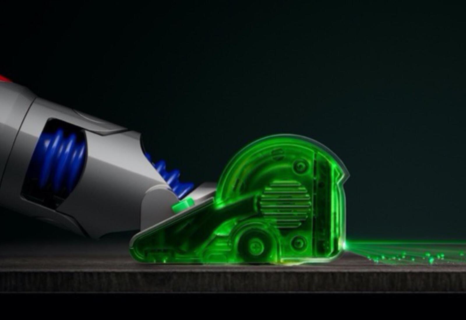 Die große Neuerung ist eine Lasertechnologie bei der Saugbürste auf dem Boden, die den Schmutz besser hervorheben soll. Viele haben kritisiert, dass der Dyson V11 keine LEDs unten hat, doch statt Licht hat sich Dyson für Laser entschieden.