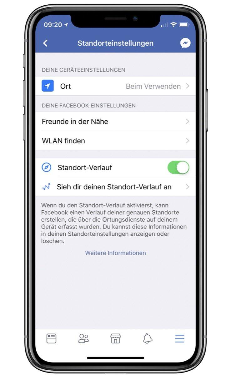 Über die mobilen Facebook-Apps lässt sich der Standortverlauf komplett abschalten. Das kann unter „Einstellungen → Privatsphäre → Standort“ erfolgen. (via)