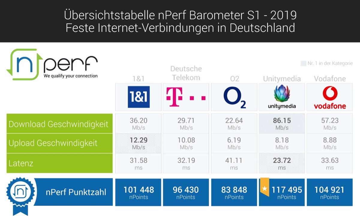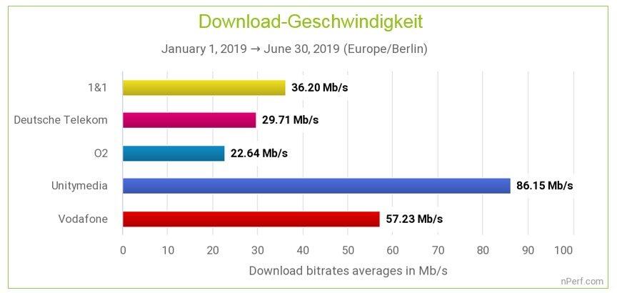 Vom 1. Januar 2019 bis zum 30. Juni 2019 hat „nPerf“, eine Internet-Speed-Test-Anwendung, die kostenlos genutzt werden kann, exakt 1.682.043 Nutzertests von deutschen Internetnutzer aufgezeichnet. Punkten konnten dabei diesmal Unitymedia (mal wieder) und Vodafone.