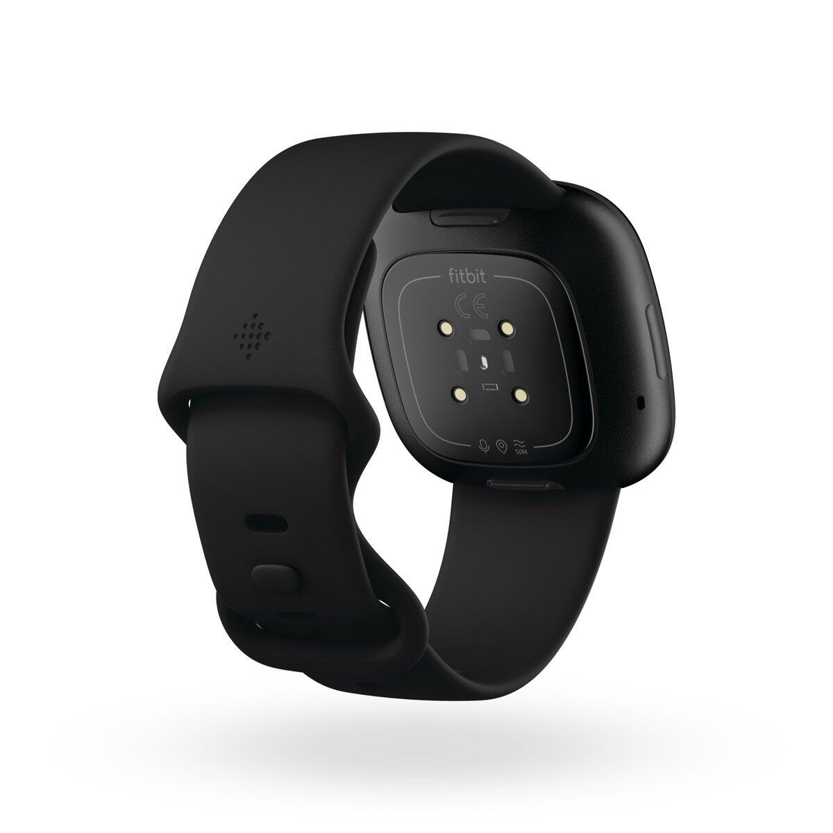 Product Render Of Fitbit Versa 3, Back View, In Black And Black Aluminum.