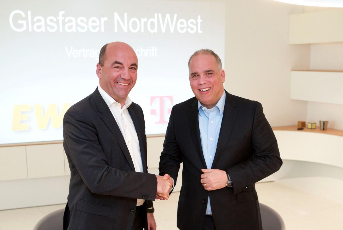 Die Deutsche Telekom und das Energie- und Telekommunikationsunternehmen EWE haben einen Vertrag unterzeichnet, der die Gründung des gemeinsamen Unternehmens (Joint Venture) namens Glasfaser NordWest vorsieht. Die Kooperation ist zeitlich nicht beschränkt.