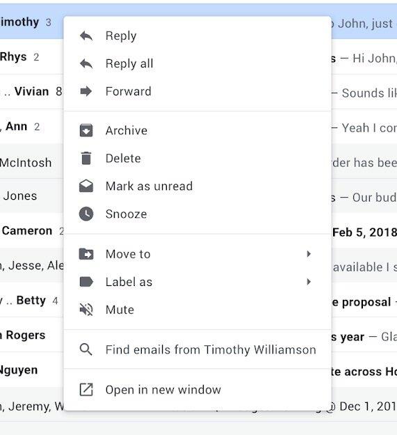 Die Weboberfläche von Googles E-Mail-Dienst Gmail bietet bereits seit jeher ein Kontextmenü für einzelne Nachrichten bzw. Konversationen. Nun hat Google verkündet, dass dieses Kontextmenü zukünftig deutlich mehr Optionen verpasst bekommt.