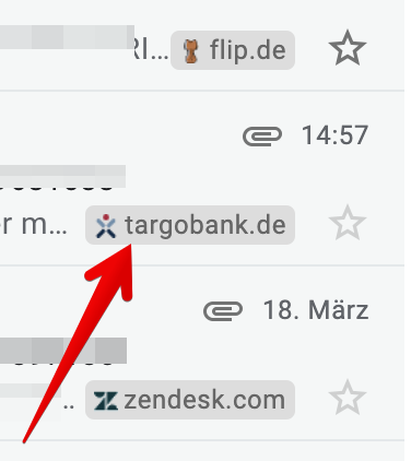 Dennoch will ich auf zwei kleine Chrome-Erweiterungen hinweisen, die ich als nützlich empfinde. Zum einen die Gmail Sender Icons, welche zu jeder E-Mail datenschutzkonform die Absender-Domain und ein Favicon anzeigen.