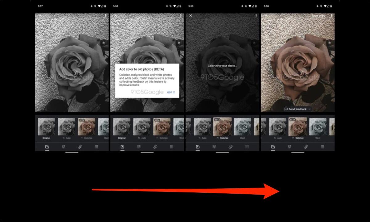 Den Abschluss macht ein Beitrag von 9TO5Google, wo man die neue Colorize-Option in Google Fotos aktivieren konnte. Damit kann man S/W-Bilder wieder farbig machen, Google nutzt dafür eine KI. Angekündigt wurde das Feature bereits auf der Google I/O, aber bisher ist es nicht offiziell verfügbar.