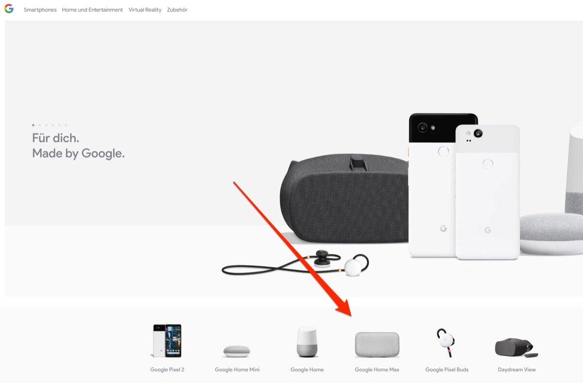 Besucht man die deutsche Seite, dann sieht man dort bei den Produkten das Pixel 2, dann den Home Mini, dann den ersten Home-Lautsprecher und dann den Home Max. Der Link zur deutschen Produktseite ist aber noch offline, beziehungsweise man wird nach dem Klick zurück auf die Startseite geführt. Am Ende also nur ein Fehler?