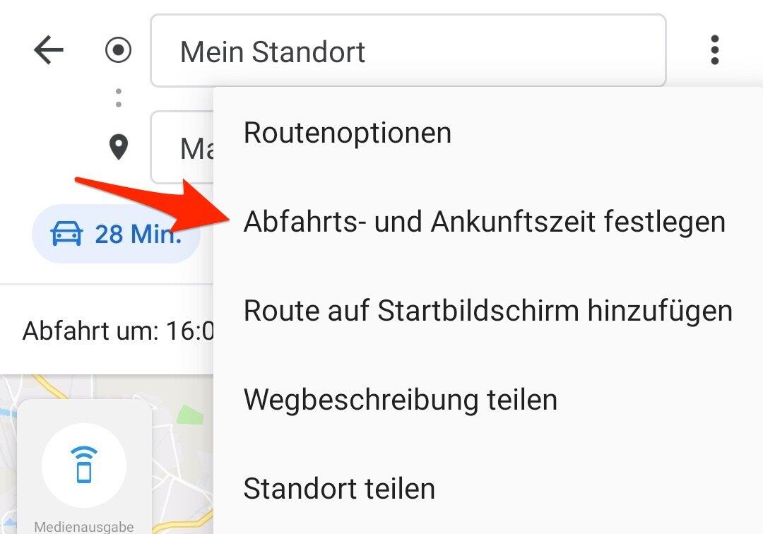 Google Maps: Option für Abfahrts- und Ankunftszeit in der App