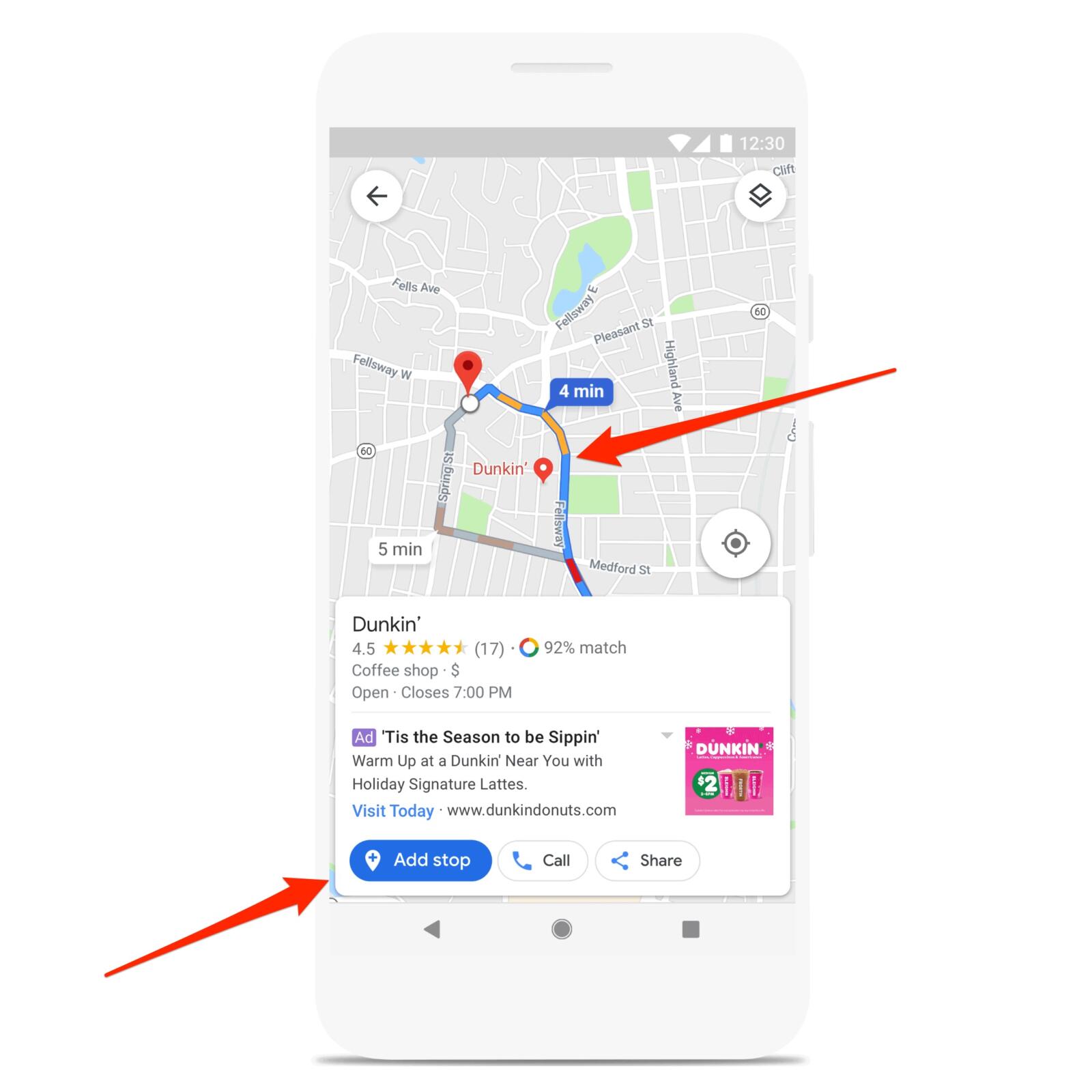 Google zeigt das im eigenen Blog auch mit einem Beispiel als GIF, wo Dunkin‘ Donuts als Vorschlag bei der Route auftaucht. Die lokalen Geschäfte können auch einen Deal (in diesem Fall zum Beispiel für einen speziellen Kaffee) über Google Maps anbieten. Nutzer können die Vorschläge wohl nicht deaktivieren, was eine effektive Art der Werbung in Google Maps bedeuten dürfte.