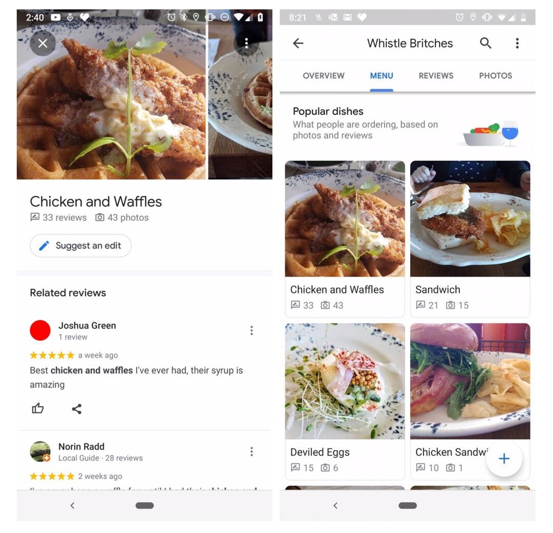 Google Maps: Nutzer bestücken Speisekarte